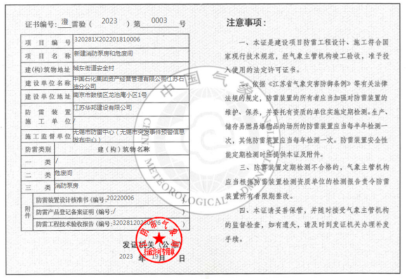 | 首頁>>市氣象局 > 行政權(quán)力 > 防雷裝置驗收合格證公示 |