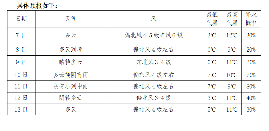 根據(jù)最新氣象資料分析,受較強(qiáng)冷空氣南下影響,本周末我市將有一次大風(fēng)降溫天氣過程。今天(6日)下午到夜里多云有時(shí)陰;7日起冷空氣開始影響我市,48小時(shí)最低氣溫降幅6~7℃,并伴有5-6級(jí)、沿江江面7級(jí)的偏北大風(fēng);8日風(fēng)力逐漸減弱,但降溫持續(xù),8-9日最低氣溫將低至0℃左右。未來三天我市以多云天氣為主,10-11日我市將有一次小到中雨天氣過程,12日起天氣轉(zhuǎn)好。 防御建議:注意防范大風(fēng)天氣對(duì)交通運(yùn)輸、戶外作業(yè)等不利影響;建議做好低溫天氣的能源儲(chǔ)備和調(diào)度等工作,公眾注意及時(shí)增添衣物,預(yù)防感冒、心腦血管等疾病的發(fā)生;建議加強(qiáng)田間管理,防范農(nóng)田低溫凍害。