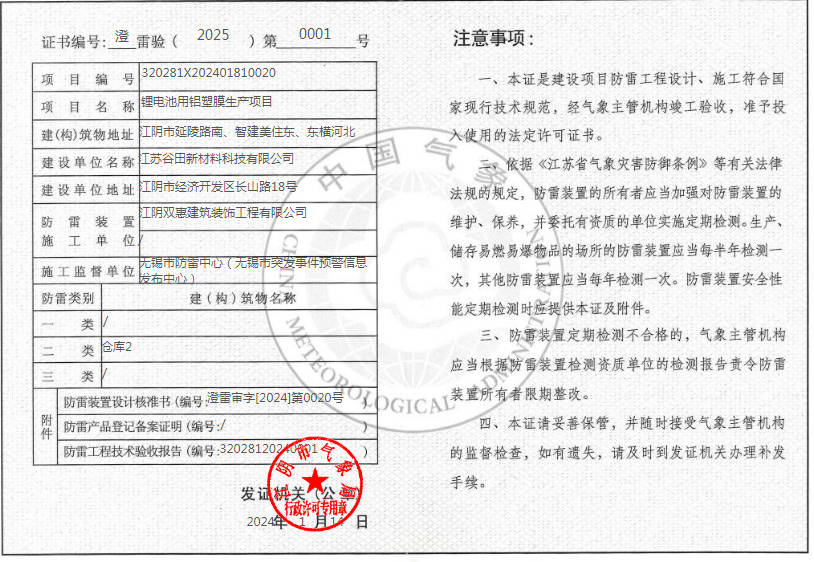 | 鋰電池用鋁塑膜生產(chǎn)項目 |