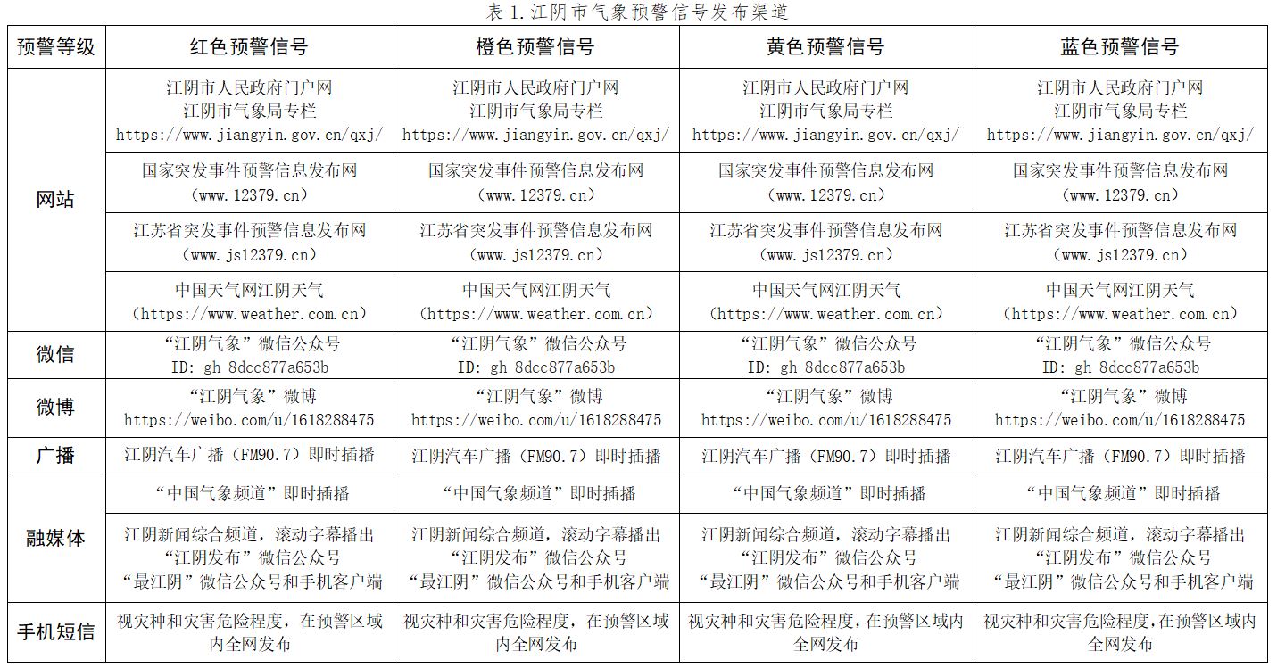 江陰市氣象局關(guān)于氣象災(zāi)害預(yù)警信號(hào)公眾發(fā)布渠道的公告