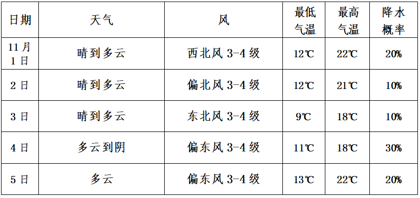 一、天氣實況 過去一周江陰平均氣溫16.1℃,最高氣溫22.7℃(29日),最低氣溫9.7℃(28日),過去一周降雨量13.1毫米。 二、秋收進度 從市農(nóng)業(yè)農(nóng)村局獲悉,截至10月31日,水稻己收獲面積6.8萬畝,收獲比例46.9%。 三、未來天氣及農(nóng)事建議 根據(jù)最新氣象資料顯示,未來幾天以晴好天氣為主,1日后期起,受弱冷空氣影響,氣溫有所降低,3日最低氣溫降至9℃。未來天氣較好,有利于開展秋收秋種工作。 具體預報如下: